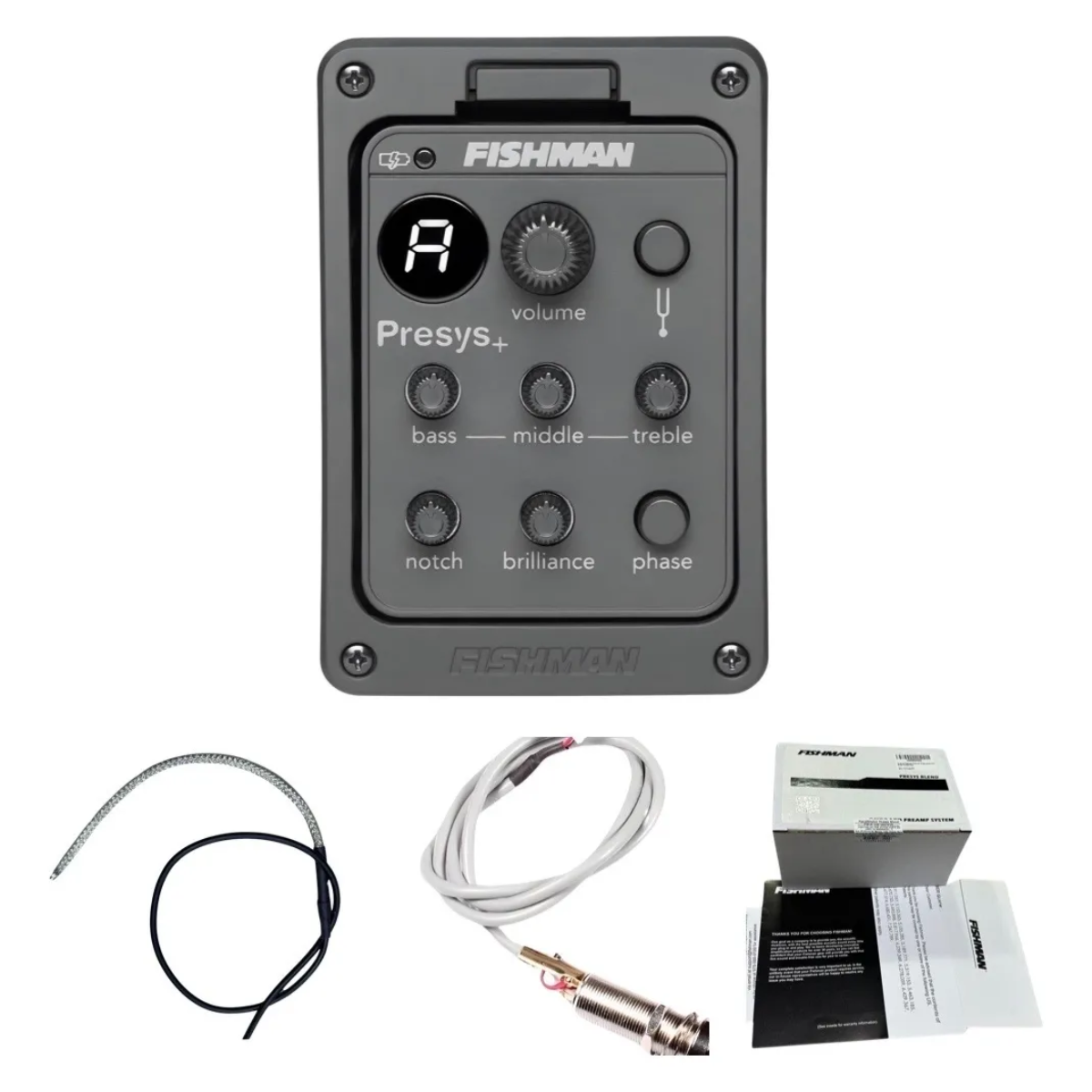 O Presys + Onboard Preamp sistema é projetado e construído para oferecer o máximo de controle, desempenho e qualidade em um formato pequeno, discreto. O sofisticado sistema de Presys + compacta possui Volume, Bass, Mid e Treble, um interruptor de fase, e um built-in sintonizador com display LED. O Presys + pré-amplificador também inclui um captador pré-wired Fishman Sonicore para livre de solda, instalação plug and play, um indicador de bateria fraca, botões baixos controle perfil e um design pivot exclusivo para facilitar o acesso ao compartimento da bateria.