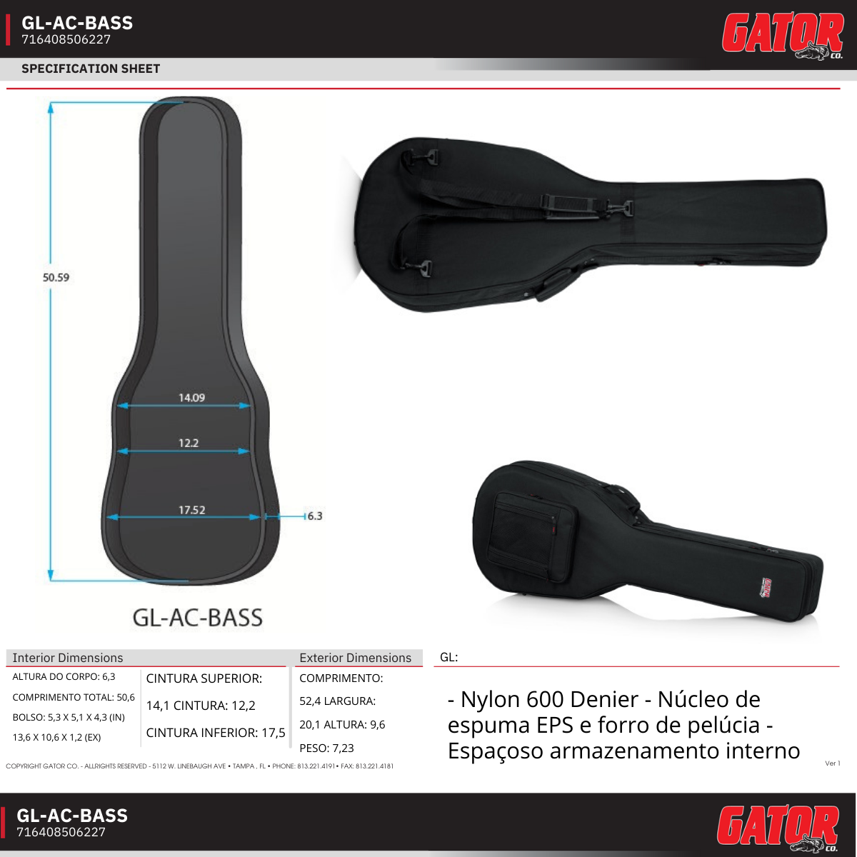 O Gator GL-AC-BASS é uma escolha confiável para músicos que buscam segurança e praticidade no transporte do baixolão. Com design inteligente e estrutura reforçada, ele oferece proteção eficiente contra impactos e variações climáticas, mantendo o instrumento em perfeitas condições. Ideal para quem está sempre em movimento, seja em turnês, ensaios ou apresentações.