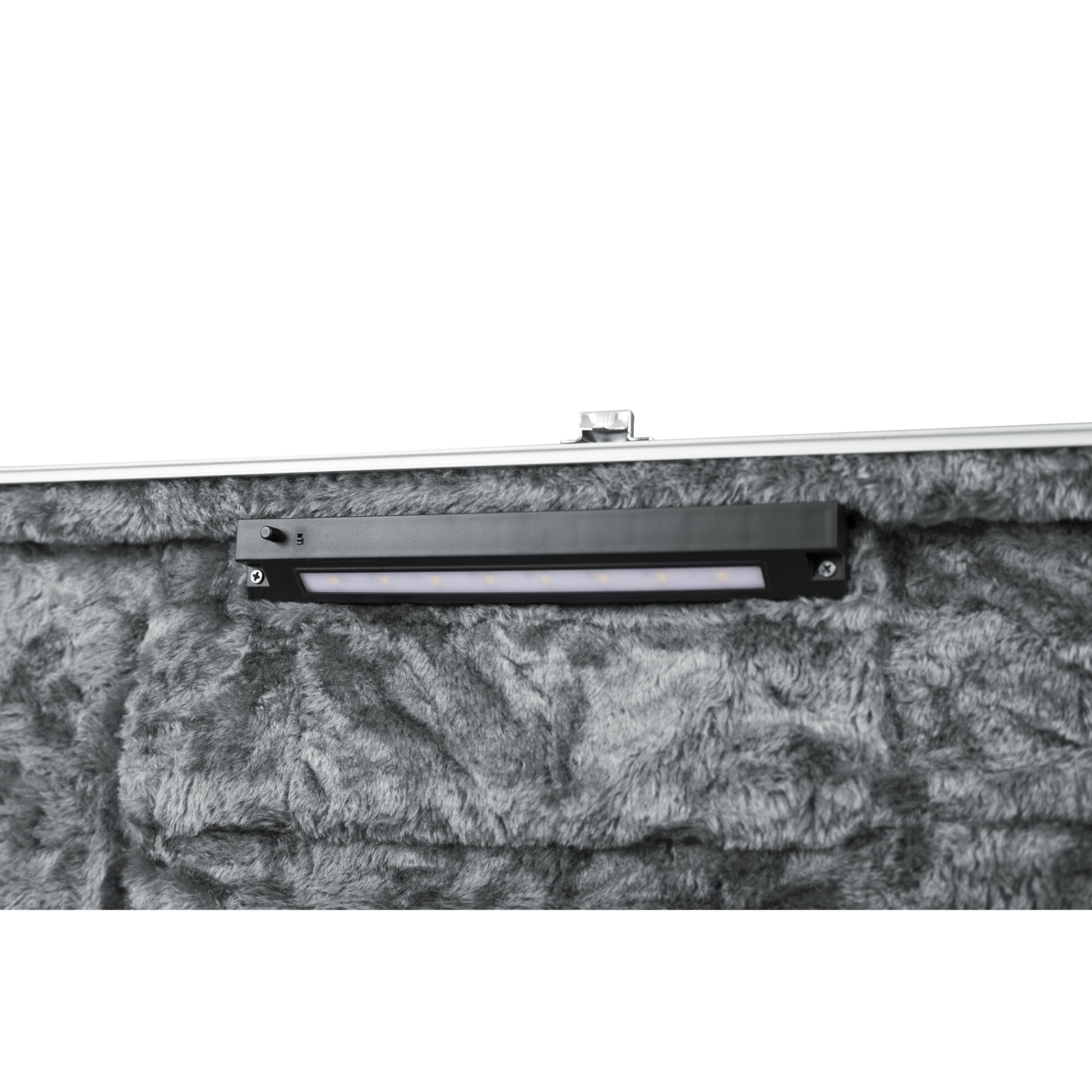 Iluminação interna de LED ilumina compartimentos de armazenamento para fácil acesso a palhetas, capos e cordas.