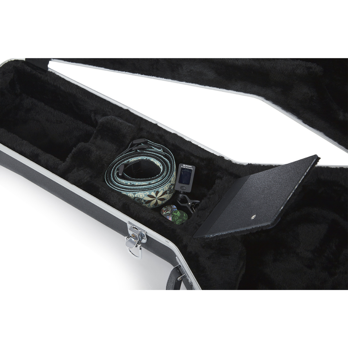 Armazenamento seguro e organizado: compartimento interno para capotraste, palhetas, cordas e outros acessórios pequenos